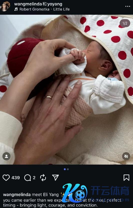 刚成就的小 Eli 攥着姆妈王咏颖的大拇指,他的大手轻轻覆在宝宝身上,配文里那句 "你带来了阳光和勇气"。