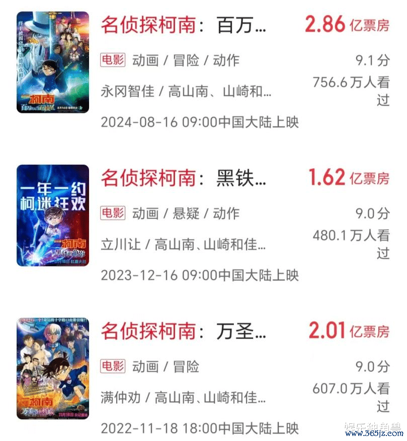 入口动画片《名侦察柯南:迷宫的十字街头》《帕丁顿熊3:秘鲁大冒险》限于体量、类型和宣发资本等身分,均莫得太多动作,要“闷声发大财”。