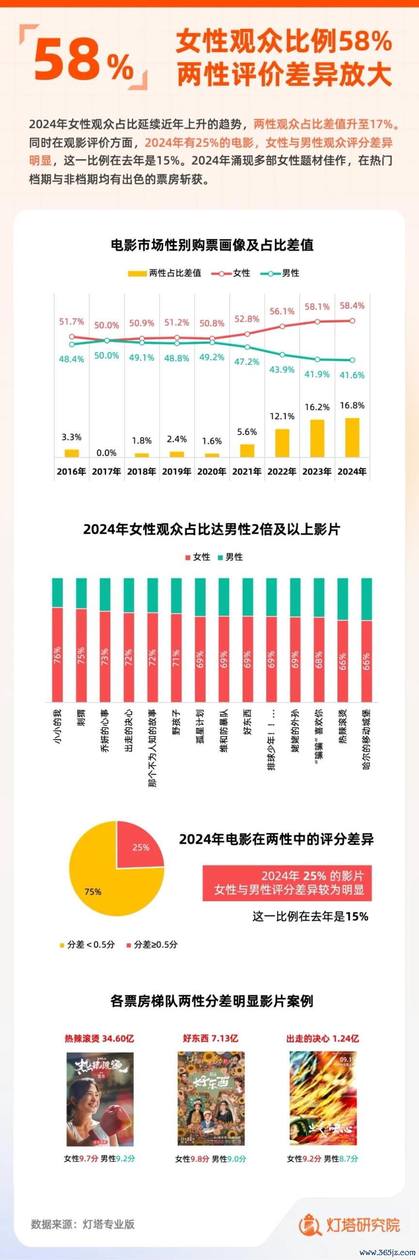 1月1日,灯塔考虑院发布了2024电影市集年度清点申诉。申诉炫耀,2024年女性不雅众占比达到了58.4%九游体育app官网,创2016年以来新高。