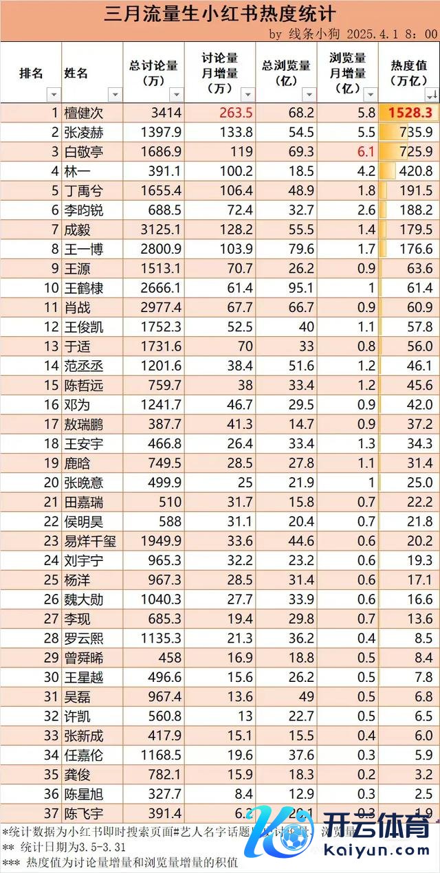 三月小红书男明星热度值,檀健次一骑绝尘!滤镜灵验播出,檀健次深受下千里市集接待!