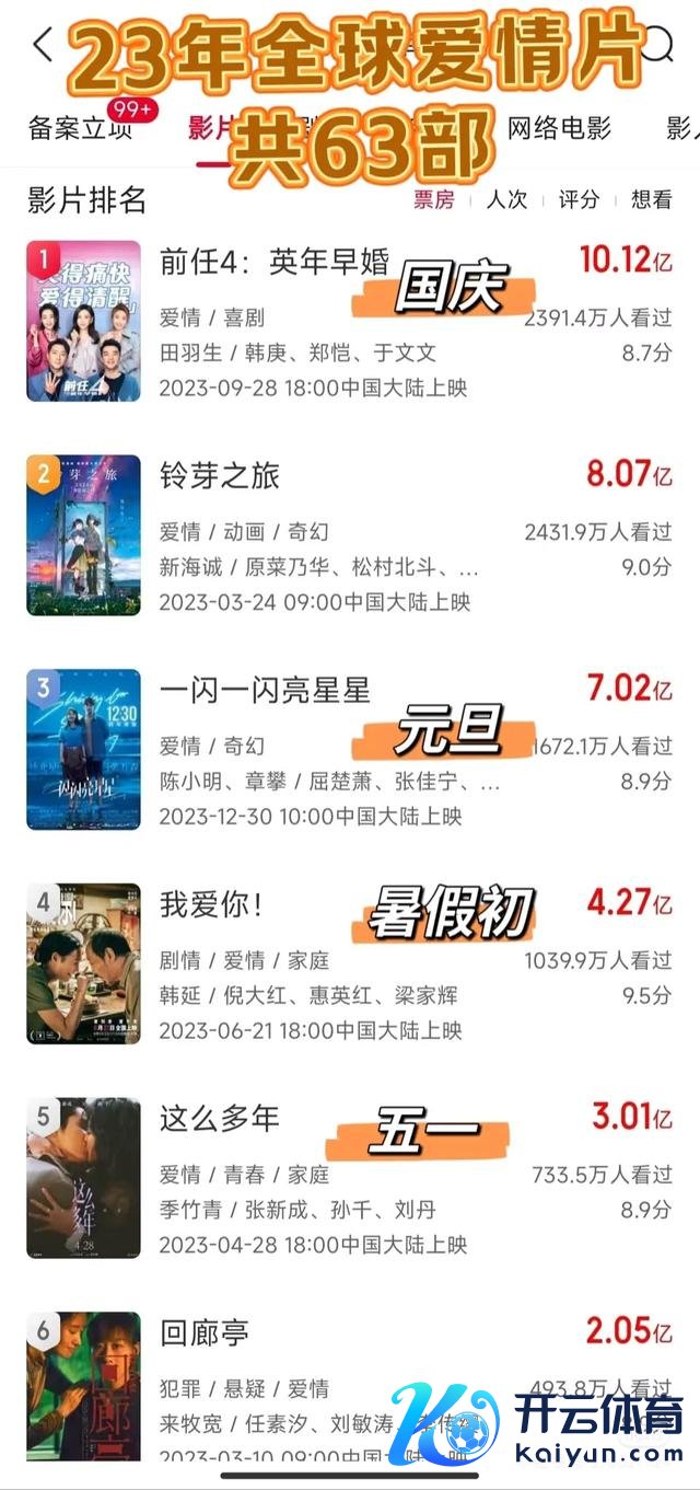 近十年,3月上映国产爱情片票房冠军。以上图片均为国内市集23和22年全球爱情电影票房。