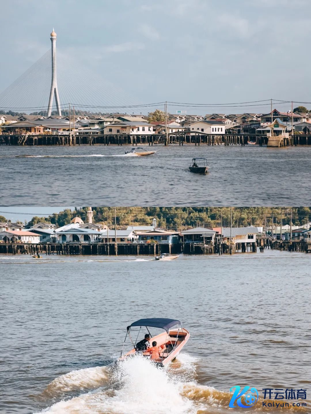 文莱河从斯里巴加湾市的市区旁流过,酿成一处水面宽绰的河湾,艾尔水村就处在这片河湾之上,2.6平方公里的面积,让它成为了寰球上最大的传统水上村庄之一。
