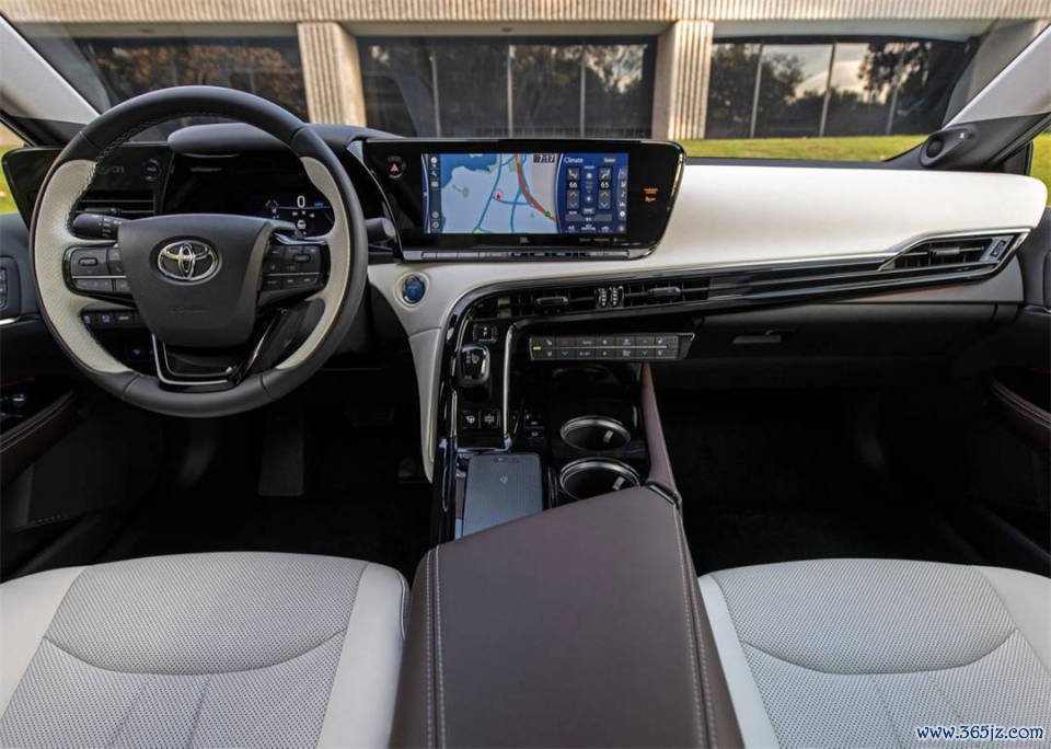 坐进车内,你会发现丰田Mirai的内饰相似崇拜。12.3英寸的液晶姿色盘和中控屏幕,昂首败露,14个扬声器的JBL音响系统,这树立,豪华感和科技感并存。天然,最让我振奋的也曾它的能源系统,领受氢燃料电板,氢气罐“T”字形顶住在车底,一共可容纳5.6公斤氢气,补充氢燃料仅需3分钟,最大续航1000公里。
