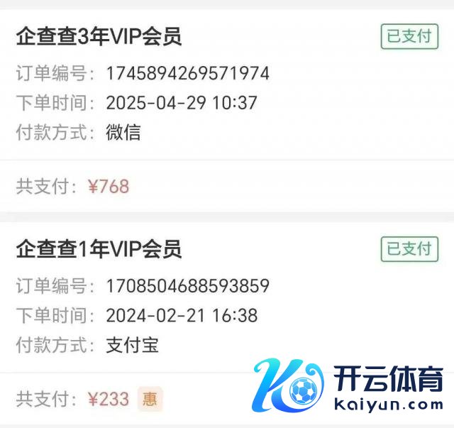 刘昭的企查查 VIP 会员支付纪录 / 受访者供图
