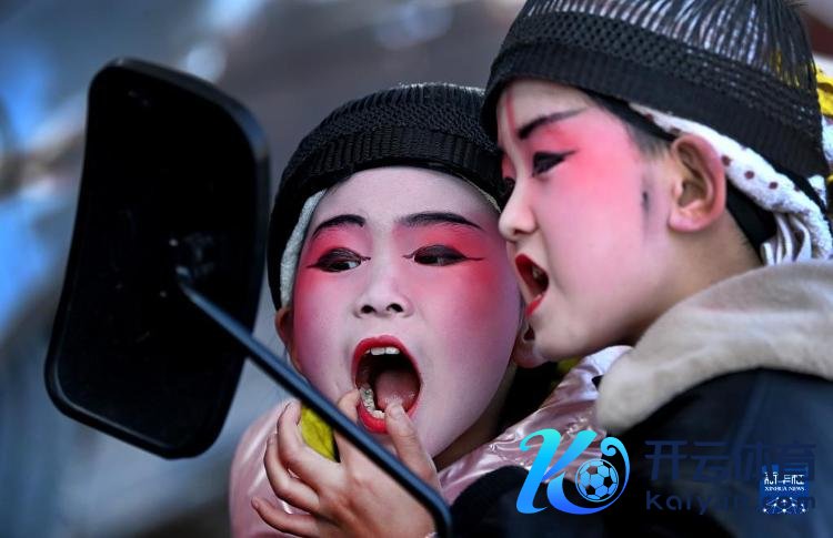 2月19日,西安市临潼区栎阳街谈卷子村进入“背芯子”饰演的两名小一又友梭巡我方的化妆适度。