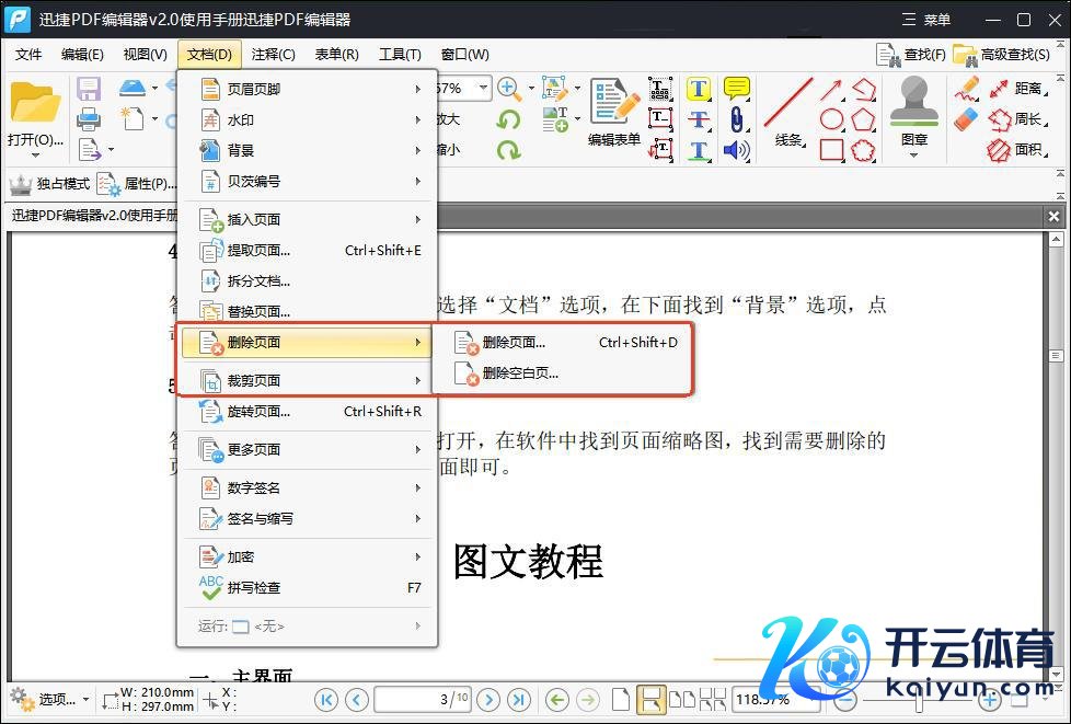 ②随后,在功能栏中秉承“文档”-“删除页面”。世界不错凭据需要秉承删除页面或删除空缺页。