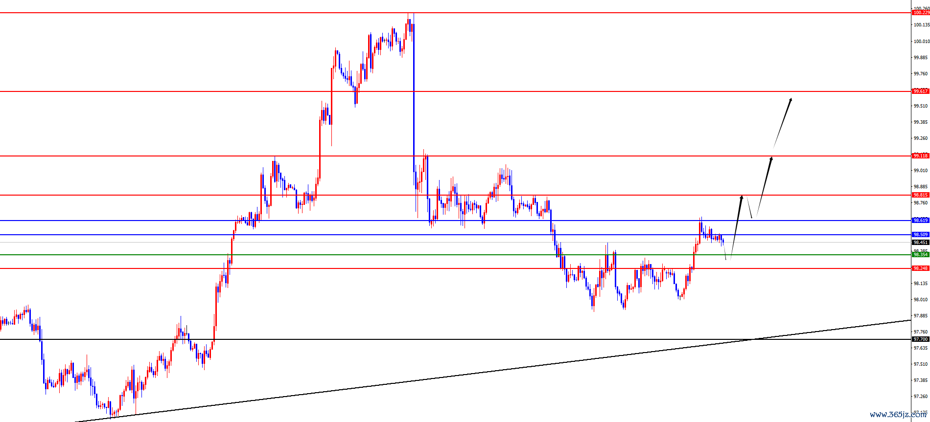 好意思指98.25-35区间多,小心5好意思金,缱绻98.80-99.10-99.60