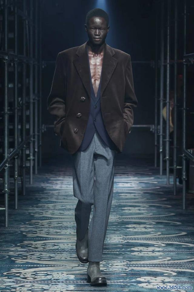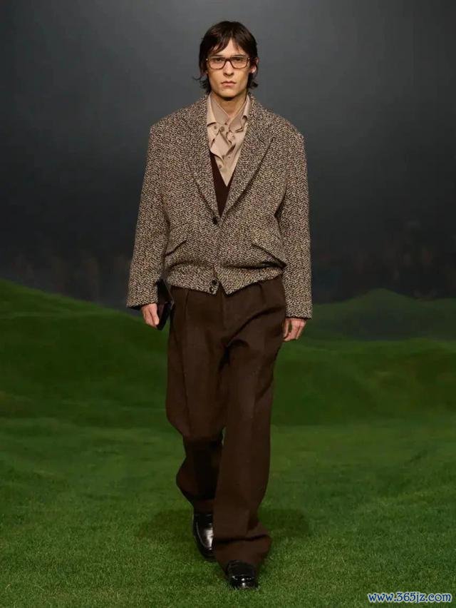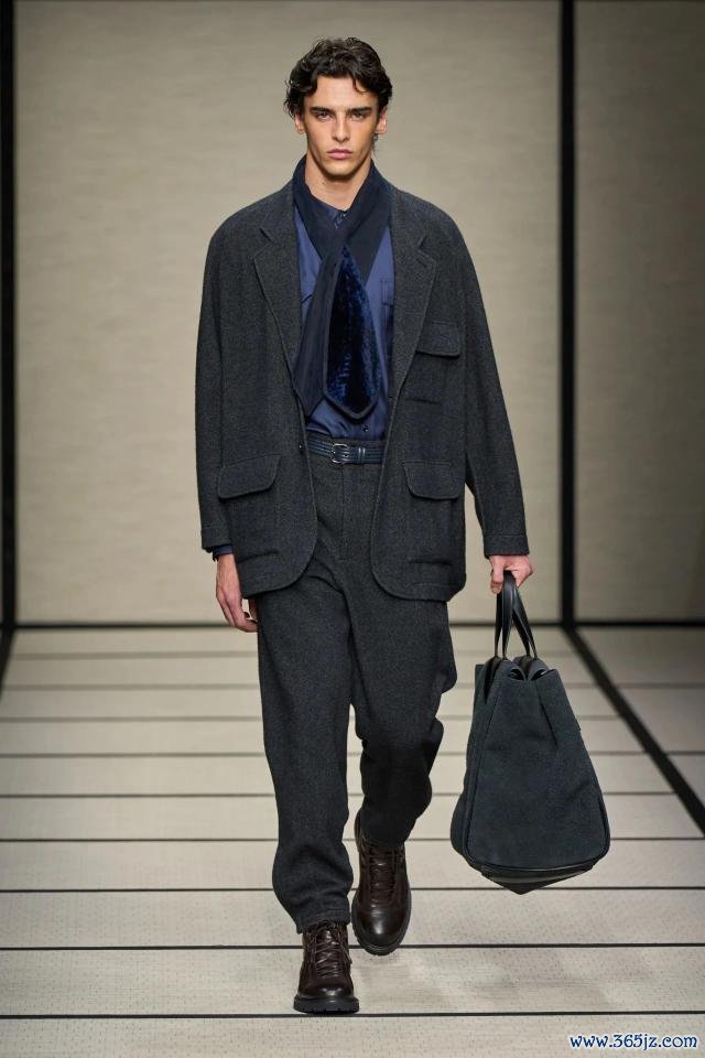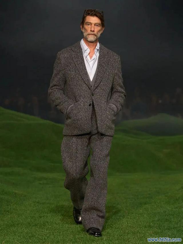 相同在米兰,Ermenegildo Zegna 通过「Vellus Aureum 黄金羊毛」系列演绎了轻奢绅装:高等羊毛布料细微而饱含结构感,乃至于秀场配景皆用巨型草地与羊群投影,呼应品牌与当然相聚的工艺形而上学。连毛料皆仿佛水灵,引颈着优雅从深色调走向细微的理性抒发。
