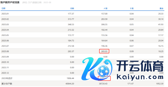 其中,8月新开户数265万户,仅次于本年2月和3月单月新开户数,且高于2024年全年10个月份单月的新开户数。