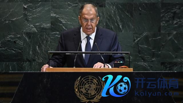 9月27日,在位于纽约的聚拢国总部,俄罗斯酬酢部长拉夫罗夫在第80届聚拢国大会一般性申辩上发言 新华社发