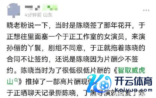 昔日《那年花开月正圆》,于正说陈晓嫌弃片酬低,是以迟迟不进组,其实亦然背锅。