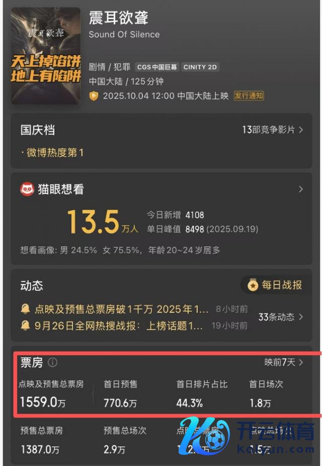 一般而言,在国庆这样的大档期跟前,院线的排片一向都是很偏向于《志愿军》《刺杀演义家》这样的视觉大片,凭据小编的警戒,《震耳欲聋》这一类型的题材最多也就给 10% 的排片。