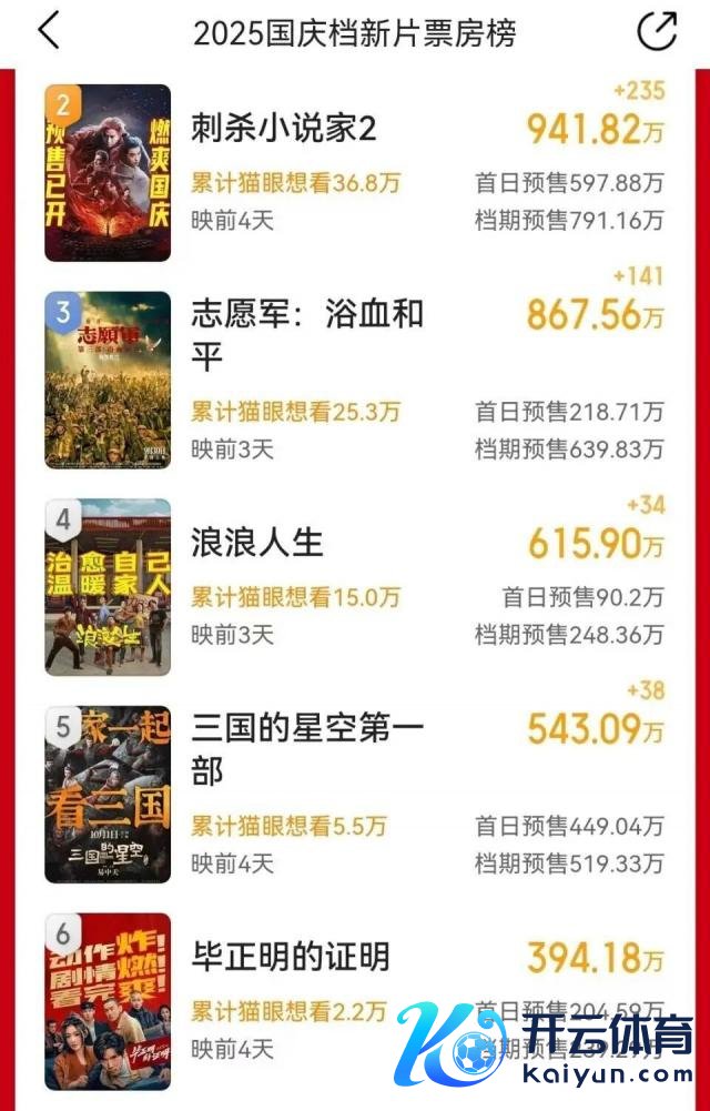 不但有主旋律的电影《志愿军 3》,还有视觉玄幻电影《刺杀演义家》也算是头部种子选手。