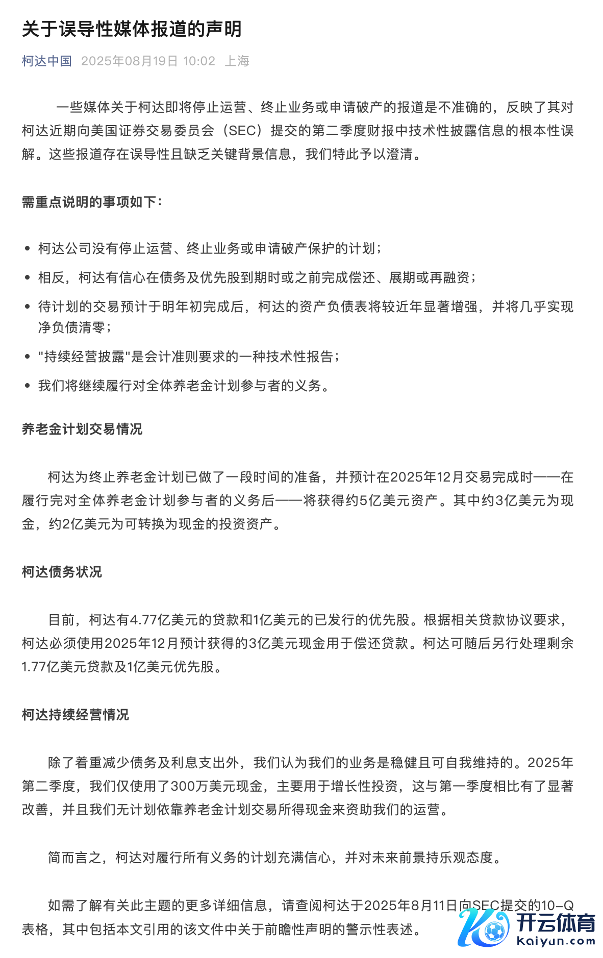 柯达公司领略:莫得罢手运营、休止业务或请求停业保护的推断柯达公司领略:莫得罢手运营、休止业务或请求停业保护的推断