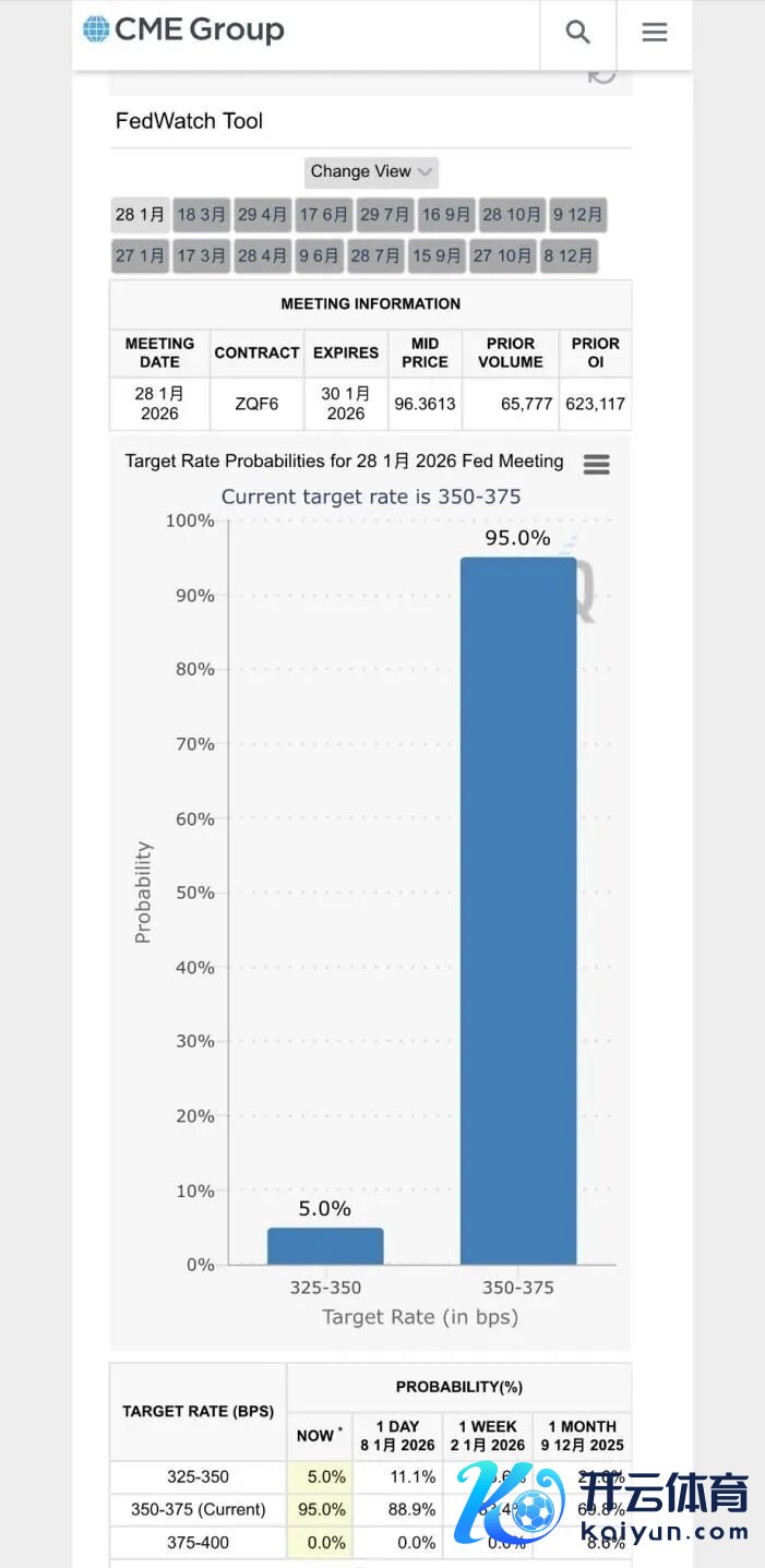 据CME“好意思联储不雅察”,非农数据公布后,好意思联储1月降息25个基点的概率为5%(公布前为11.1%)现金九游体育app平台,保管利率不变的概率升至95%(公布前为88.9%)。